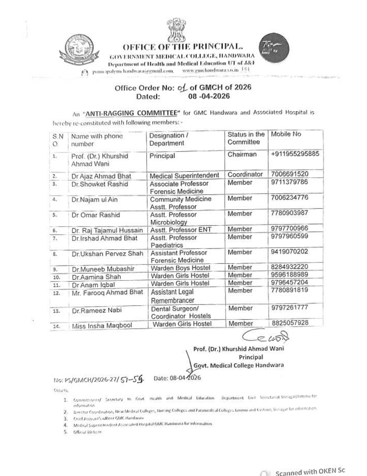501 (Toll Free), 01955295194 (Associated Hospital), 01955295885 (Main Office, GMC)